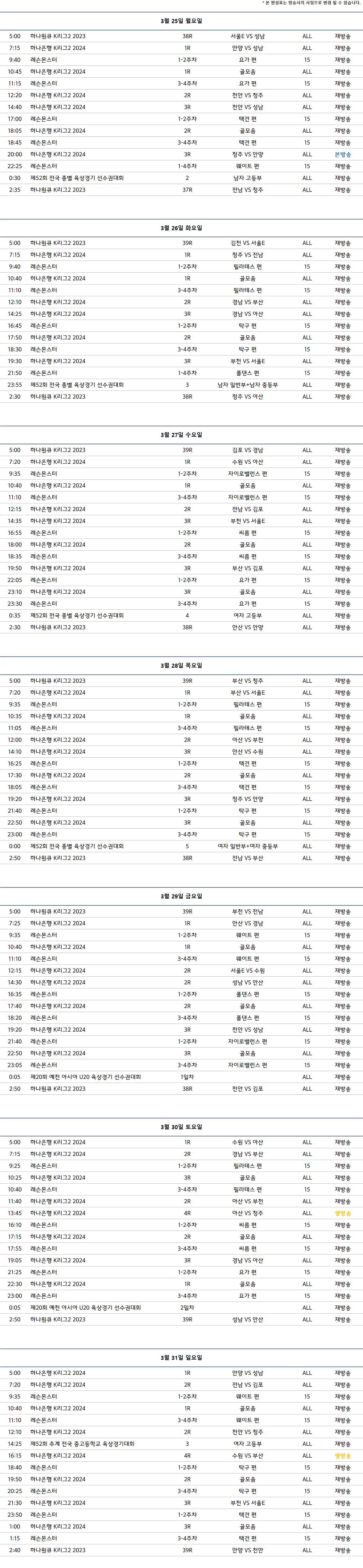 주간편성표 2024.03.25 ~ 03.31