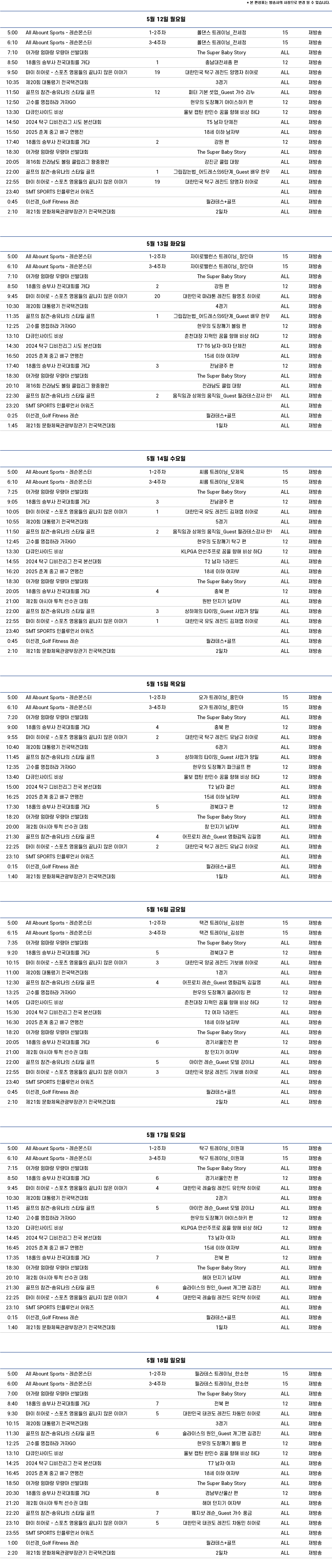 주간편성표 2025.05.12 ~ 05.18